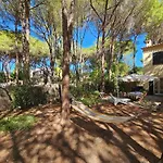 Die 2-Zimmer- Villetta In Stile Mediterraneo verfügt über eine sonnige Terrasse mit Blick auf den Garten und ist 54 Autominuten vom Flughafen Cagliari-Elmas entfernt gelegen.